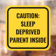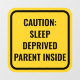 Caution: sleep deprived parent inside, Yellow and black baby on board funny alternative car window sticker by Stick it up.
