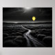 Yellow Balloon floating across a vast landscape, glowing in the dark of night. Printable, Large print