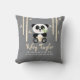 A cute and sweet personalised baby birth announcement pillow with a baby panda bear in diapers held together with a diaper pin holding a green bamboo shoot in her hand. It sits happily in the middle of a yellow bamboo forest on a grey background. Customise it to say whatever you want - baby's name, date of birth, time of birth, weight and height. Perfect for a baby boy or baby girl nursery. Artwork © Chrissy H. Studios, LLC. All Rights Reserved.