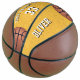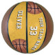 Yellow Basketball Ball with Player Team Name Number. The design has two basketballs on the left and the right side and text on a yellow background. Add your name, team name and number. This custom personalised basketball is a perfect gift for basketball player, teammate, coach and a great keepsake to remember the favourite sport.