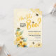 A cute gender reveal theme with 'He or She, what will baby BEE' bumblebee and honeycomb. Featuring little watercolor bees, yellow flowers, and a messy honeycomb pattern. Yellow and black fonts, but you can change them out to whatever you'd like. You can also change the background colour, I also think it looks cute with a white background. Cute Yellow Flowers Honeycomb Watercolor He or She What Will Baby BEE Gender Reveal Party Invitation