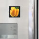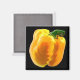 This Magnet features a yellow bell pepper with a green stem. In the original artwork by ZoeSPEAK, the pepper has a zigzag golden brown shadow area and bright yellow highlights around the zigzag lines at the base of the stem. The background is black, but can be changed to any color you like. This pepper is ready to add some pizazz to any kitchen.