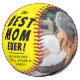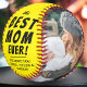 Yellow Best Mum Ever 2 Photo Collage Softball. The best mum ever 2-photo template softball. Personalise it with 2 favourite photos and your names. You can change any text on the softball or erase it. This modern custom and personalised softball is a perfect gift for a mother for a Mother`s Day, birthday or Christmas and is a lovely sports photo keepsake.