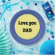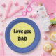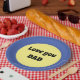 A cool yellow and purple big dot design in trending colours with a text template. Click personalise to change the short words to your liking, or buy it as is.