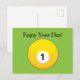 Yellow Billiard Ball Number One Personalise Holiday Postcard