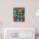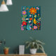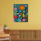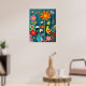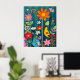 Vibrant Yellow bird among vibrant flora and Fauna on a teal/blue/green background. Instant download Large print 24x30. Can be downsized in same aspect ratio.