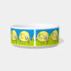 This is a heavy, durable bowl decorated with Tibbies of many colors, the perfect size for hungry/thirsty Tibs. The design is interesting and printing clear.