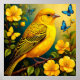Yellow Bird Perched Among Bright Blossoms Poster