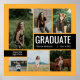 Stylish graduation design features six senior photos with "GRADUATE" as a large focal point. Personalize the modern custom text with your grad's name, school, and class year. Customize the colors of the picture frame and boxes on the front and the boxes on the back to match your school colors or coordinate with the photography. Available in the most popular and common school color combinations - green/yellow, red/yellow, crimson/gold, blue/yellow, navy/gold, black/gold, purple/yellow, red/silver and red/black. Matching products and other colors available.