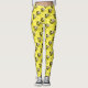 Leggings feature an original marker illustration of a row of black-and-yellow cartoon bumblebees, printed on a yellow background.