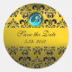 YELLOW BLACK DAMASK MONOGRAM , blue turquase Classic Round Sticker