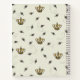 This is a chic and elegant custom notebook features the timeless Queen Bee Royal Gold Crown design on the front with Personalised Name, and the back cover boasts a whimsical bee and gold crown pattern, adding to its charm.