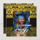 YELLOW BLACK GRADUATION DAMASK MONOGRAM champagne Invitation