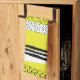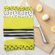 A bright and modern kitchen towel featuring varieties of hand drawn patterns with yellow accent.