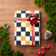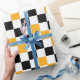 Yellow Black White Checkered Pattern Design Wrapping Paper