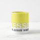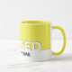 Modern yellow BLESSED In Jesus' Name Christian mug, with the word BLESSED in WHITE typography and IN JESUS' NAME in PALE YELLOW. All text is CUSTOMIZABLE, so you can create your own text and add your favourite Scripture reference. This inspirational Christian mug would make a great gift for Christmas, Birthdays, Mother's Day, Father's Day, etc. Other colours (incl glitter versions) are available.