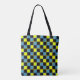Yellow blue chequered geometric pattern tote bag