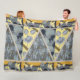 YELLOW BLUE GREY FLOWERS, BUTTERFLIES BOLD FLORAL FLEECE BLANKET