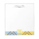 Yellow Blue Plaid Tartan Custom Script Monogram Notepad