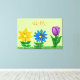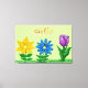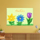 Pretty floral garden with golden yellow flower, blue yellow flower and purple tulip in the green grass. Hello is written in red script. Keep wording, personalise it or delete text. Lovely premium wrapped canvas for your home decor or office walls to bring the spring and summer months indoors year-round for anyone who loves flowers and nature. Original Graphic Artwork by TamiraZDesigns. www.zazzle.com/tamirazdesigns
