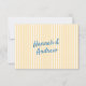 Modern - retro -and elegance, this striped wedding rsvp card sets the perfect tone for your special day. Featuring soft pastel yellow vertical stripes and a refined blend of classic serif and quirky retro handwritten typography in blue, this design brings together elegance and a little bit of fun.
