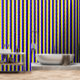 Vertical Yellow and Blue Stripes divided by a thin line of black and white stripes lines surface pattern design