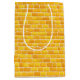 This enchanting gift bag features a charming yellow brick design that pays homage to the beloved Yellow Brick Road of The Wizard of Oz. The hand-illustrated bricks wind playfully across the surface, creating a sense of motion and whimsy. Rendered in warm, golden-yellow tones with soft shading and subtle texture, the pattern feels straight out of a classic storybook. Sturdy white ribbon handles and a matching yellow tissue paper option complete the look, making this bag ideal for themed celebrations, birthdays, or gifts meant to inspire a little adventure.