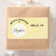 Bridal showers can bring together a group of people who may not all know each other. Make it easy with name tags for attendees. This label features a watercolor pastel yellow background. Personalise the text fields, remove any text or click customise to select a typeface colour, size, and style your prefer.