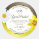 Make a lasting impression with this elegant and modern product label design featuring cute flowers on a yellow and dark brown glitter frame with a shimmery fine gold decor and a white background.