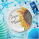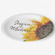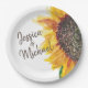 Yellow Brown Sunflower White Wedding Couples Paper Plate