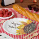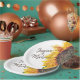 Beautiful yellow and brown boho-style watercolor floral on white wedding paper plates, customised with the names of the bride and groom. Contact us for help with customisation or matching products.