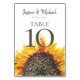 Yellow Brown White Boho Sunflower Wedding Table Number