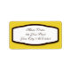 Custom printed return address labels with a yellow and brown design, and personalised with your name and address.