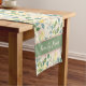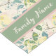 Customise this elegant yellow budgerigar table runner with your family name.  The pretty pattern has yellow budgies and green leaves on a cream background with touches of blush pink.