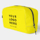 Custom Business Logo vibrant yellow color Name Company Promotional Instagram Travel Dopp kit featuring a simple and modern template with your business logo, photo or image and any personalized text. Add company name, social media, website, contact or any marketing info. The modern dopp kit is fully customizable with any color, pattern and design, and it's perfect as mens dopp kit, women's dopp kit, kids dopp kit, travel Cosmetic & Toiletry Bags, kid's pencilcase for back to school, college, or as promotional gift for boss and employee, as giveaway for customers and friends. Add your name, website or social network address. No minimum order.