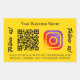A bright yellow background. Personalise and add your business name, your own qr code to your Instagram account and a text. Black text. With the text x2: Follow us!