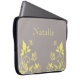 Sweet and dainty Butterfly Floral Electronics Sleeve with a muted dusty grey background and light yellow butterflies and floral vine embellishments. This elegant floral laptop sleeve will keep your gadget protected with a dash of girly flair! Easy to customise, simply add the personalised text of your choosing in the text fields provided. Click on the "Customise It" button to find additional personalisation options.