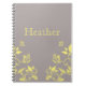 Sweet and dainty Butterfly Floral Notebook with a muted dusty grey background and light yellow butterflies and floral vine embellishments. This elegant floral notebook is full of girly flair and is perfect for jotting down notes or whatever else your imagination holds! Easy to customise, simply add the personalised text of your choosing in the text fields provided. Click on the "Customise It" button to find additional personalisation options.