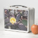 This is a standard metal lunchbox that appears to work just fine. We designed this box ourselves with an uploaded photo and custom text on the front and back. It looks absolutely beautiful except the front of the lunchbox is not centered like it shows in the photo. The print borders don't align with the inset flat part of the box where the preview photo online showed it perfectly centered in there. The back looks nice and centered though.