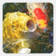 Closeup yellow carp koi (Cyprinus) on the water surface