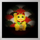 A Japanese lucky cat, illustrated by Megan Anderson. The kanji on the coin represents "good luck".