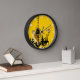 Vintage Chickadee Love Bird Rustic Farmhouse Owl Mustard Yellow Chandelier Optional White Dots Custom Wall Clock - Your Name - or change to read whatever you like. Vintage Mustard Yellow and Black, Vintage chandelier, Wedding anniversary clock, Newlyweds, 1st christmas, First christmas, Wedding anniversary gifts, Family established, Bride and groom wedding date, Vintage love birds, Romantic Rustic Farmhouse yellow lovebird,