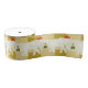 Festive White Elephant Christmas party gift wrapping ribbon featuring a playful, hand-drawn illustration of white elephants holding a stack of presents and wearing a Santa hat! The background is gorgeous pop with a golden yellow checkered gingham print. Original art and design by Annie Montgomery Design.