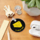 Yellow cheese slice. Custom background colour. Custom text on both sides.