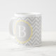 Enjoy your coffee in mass quantities with a Yellow Chevron Monogram Jumbo Mug. Mug design features a light grey chevron pattern with a circle emblem outlined in yellow. Additional items available with this design as well. Please contact me directly for assistance with personalisation.