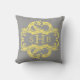 Elegant and sophisticated Chic Damask Mongram Pillow featuring a soft grey background and a stylish damask flourish embellishment in yellow. This modern design is easy to customise with your own text. Click "Customise It" to find more personalisation options.