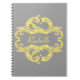Elegant and sophisticated Chic Damask Notebook featuring a soft grey background and a stylish damask flourish embellishment in yellow. This modern design is easy to customise with your own text. Click "Customise It" to find more personalisation options.