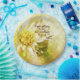 Gorgeous light yellow chrysanthemum flower displayed on a paper plate with quote, "I have nothing to lose but something to gain." – Eminem