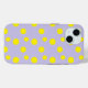 The yellow circles on purple pattern presents a playful and vibrant design with lively yellow circles scattered across a deep purple background, creating a cheerful and dynamic visual effect. This energetic combination of colours and shapes.