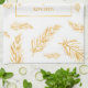 Destei's digitally created pattern of feathers in yellow colour scheme. In the middle there is a personalizable text area for a name. The text is placed inside a thin yellow gradient border.